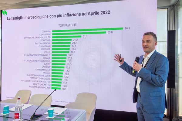 Luca De Nard (amministratore delegato NielsenIQ Italia) durante la conferenza stampa di ieri 19 maggio.
