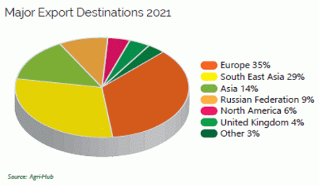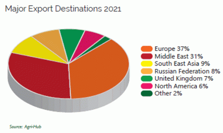 A gravare sul pricing delle arance, specie per la Spagna, la massiva presenza in Europa di arance egiziane (di recente primo player mondiale per esportazione della referenza). Questo fenomeno, costante degli anni recenti, potrebbe essere ancor più pressante nel corso di quest'anno alla luce del deciso calo delle esportazioni egiziane in Cina e soprattutto del parziale blocco alle esportazioni verso Russia ed Ucraina, che in condizioni di normalità assorbivano più della metà della produzione egiziana.