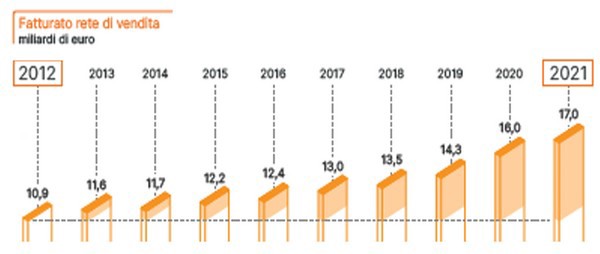 Nel corso dell'Assemblea tenutasi ieri, 22 giugno 2022, a Bologna, i delegati dei soci hanno approvato un bilancio che vede in crescita tutti i principali indicatori economici. Il fatturato della rete Conad è arrivato a 17 miliardi di euro, in aumento del 6,5% rispetto all'anno precedente, superando di 9 volte la media del mercato (+0,7%) e continuando una crescita a ritmi sostenuti che prosegue da 15 anni, dove Conad ha più che raddoppiato le proprie dimensioni.