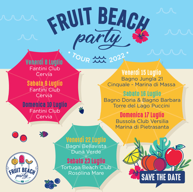 Come nel caso di Fruit Beach Party, che vede partecipare sei aziende di rilievo, unite nel rendere l'ortofrutta la grande protagonista dell'estate. Al tour hanno aderito Berryway, Lamponi e Mirtilli; Citrus L'Orto Italiano, Limone verdello; Pink Lady®, Mela; Solarelli, Pesca Nettarina di Romagna Igp; Metis®, Susina; Moncada®, Pomodori datterino, ciliegino e Camone®.