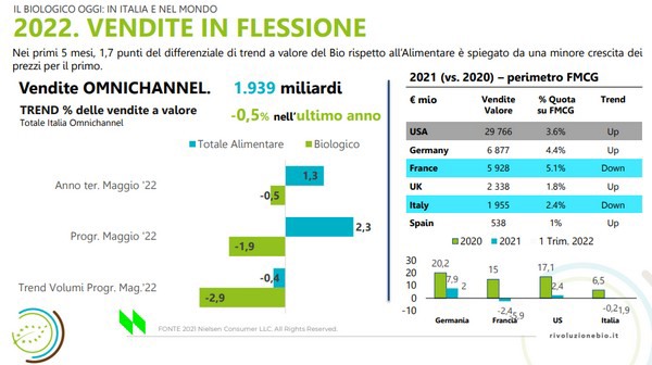 Dopo un biennio brillante 2020-2021 in cui il biologico ha "beneficiato" degli effetti della pandemia, il contesto di instabilità con cui si è aperto il 2022, con il conflitto russo-ucraino e lo scenario inflattivo legato ai costi energetici e delle materie prime, sta modificando le abitudini di consumo degli italiani.