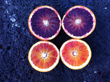 Tarocchi a confronto. Da sx.: tarocco nucellare, tarocco comune, e tarocco Vigo (foto di metà gennaio)