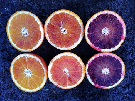 Tarocchi a confronto. Da sx.: tarocco nucellare, tarocco comune, e tarocco Vigo (foto di metà gennaio)