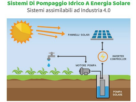 "Tramite il nostro sistema di alimentazione – ha proseguito il manager – è possibile, inoltre, rendere gli impianti idrici della propria azienda agricola indipendenti dai consumi energetici, azzerando totalmente i costi della fornitura elettrica. I nostri sistemi a pompa solare a isola possono essere applicati a uso delle molteplici esigenze idriche che un'azienda agricola quotidianamente esprime, a prescindere dal momento emergenziale contingente. Parliamo di sollevamento di acqua da pozzi, invasi o torrenti, ma anche di trasferimento di acqua in serbatoi, vasche, piscine e, ovviamente, dell'immissione in sistemi di irrigazione, fertirrigazione e pressurizzazione".