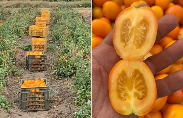 "L'inizio dei trapianti del pomodoro da industria è datato 1° aprile. La raccolta è iniziata la scorsa settimana e dovrebbe durare fino a circa metà settembre. Oggi (si legga 20 luglio 2022, ndr) il clima è ventilato, pur registrandosi circa 31 °C. Dal 13 luglio stiamo raccogliendo il pomodoro tondo giallo da industria, dalla consistenza morbida e dolce al gusto", spiega a FreshPlaza Rocco Devona, il quale porta avanti la sua azienda agricola nella provincia di Crotone, in Calabria.