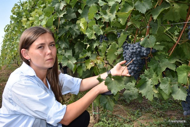 Tatiana Burca mostra un bellissimo grappolo d'uva moldavo