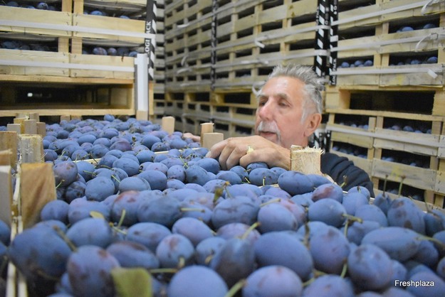 Piet osserva le susine destinate al mercato dell'Europa occidentale