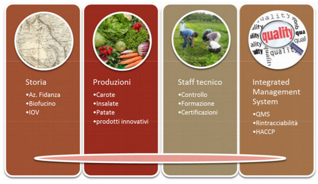 Una lunga storia imprenditoriale che ha portato alla creazione, nel giro di quasi tre decenni, di un gruppo organizzato di produttori specializzati nella coltivazione biologica di ortaggi. Un gruppo che, oltre alla presenza dei produttori singoli e associati, è organizzato in diversi settori: da quello tecnico, composto da agronomi responsabili della produzione, al settore commerciale, passando per l'ufficio qualità e il team per l'autocontrollo agroalimentare.