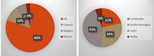 Paesi esteri e Regioni italiane in cui sono distribuiti i prodotti del gruppo, oggi estesa su centinaia di ettari.