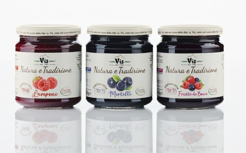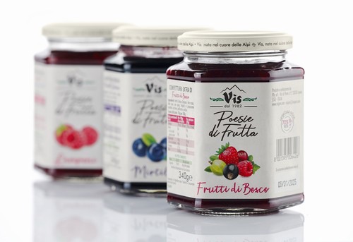 Oltre Natura e Tradizione, la confettura al 75% di frutta che, come detto, da quest'anno con le sue 18 referenze, diventa l'ammiraglia di casa VIS, l'azienda continua a proporre la linea Poesie di Frutta con il 70% interamente dedicata coi suoi 8 gusti ai frutti del sottobosco, anch'essa con un'etichetta tutta nuova.