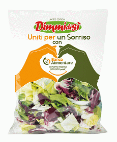 Forti del successo dell'iniziativa Aiutaci a donare* attivata l'anno scorso con Banco Alimentare veicolata su due zuppe DimmidiSì, La Linea Verde, con sede a Manerbio (provincia di Brescia), ora ha deciso di attivare un nuovo progetto dedicato: l'insalata limited edition Uniti per un Sorriso, un mix di cicoria pan di zucchero, indivia riccia, radicchio rosso, con un pack personalizzato che sarà disponibile dal primo di novembre. Con l'acquisto dell'Insalata Uniti per un Sorriso i consumatori contribuiscono a sostenere l'organizzazione nella distribuzione di alimenti pari a 200.000 pasti* che verranno donati a chi è in difficoltà.