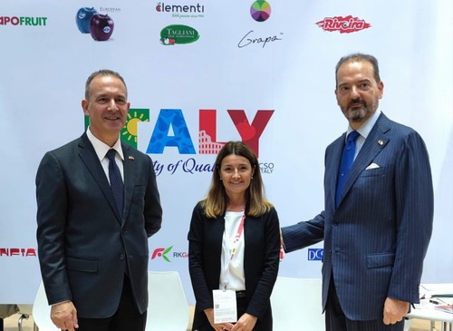 Durante la prima giornata di fiera, mercoledì 2 novembre, lo stand della Collettiva Italy ha ricevuto la visita dell'ambasciatore italiano in Thailandia Paolo Dionisi e del direttore ICE Bangkok Giuseppe Lamacchia. I rappresentanti della nutrita delegazione di aziende associate a CSO Italy presenti allo stand, quindi di Mazzoni Group, Tramaco, Origine Group, Apofruit, European Fruit Group, F.lli Clementi, Infia e RK Growers, hanno colto questa preziosa opportunità per esporre all'ambasciatore Dionisi e al direttore ICE Lamacchia le problematiche relative all'esportazione dei prodotti ortofrutticoli italiani in Thailandia.