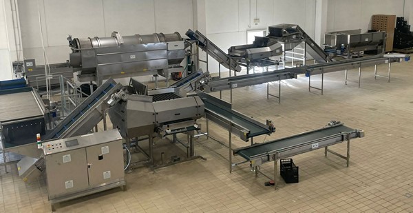 La linea è completa di sterratore a molle motorizzato e di due calibratrici a setaccio; una di queste calibratrici, necessaria per eliminare il prodotto sottomisura, è collocata prima del lavaggio/spazzolatura, l'altra è stata inserita dopo i trattamenti per calibrare il prodotto prima del confezionamento finale.