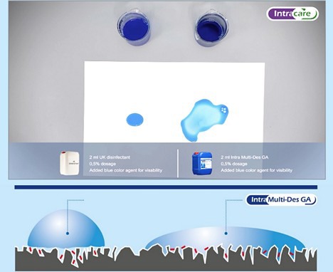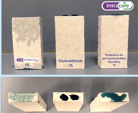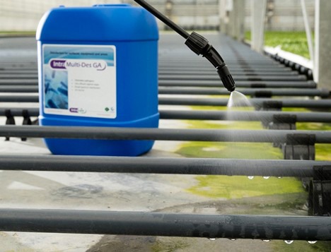"Tutte queste operazioni necessitano di un disinfettante ad azione persistente, come accennato - ha sottolineato Rigo - Uno su tutti è Intra Multi DES-GA, il nuovo disinfettante dell'olandese Intrahorti, approvato e registrato in Italia come Presidio Medico Chirurgico (Reg. N. 21048 del Ministero della Salute). Si tratta di un disinfettante innovativo a base di Gulteraldeide e sali quaternari di quinta generazione, che presenta caratteristiche uniche di bagnabilità e penetrazione, per raggiungere i micro-ogranismi in profondità nelle superfici.