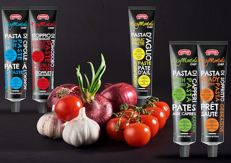La Linea Chef è composta da una pasta densa in tubetto, a elevata concentrazione di materia prima, nei gusti: cipolla, capperi, aglio, soffritto e doppio concentrato di pomodoro. Si tratta di una proposta sfiziosa e originale sia nel packaging sia nella ricetta, disponibile in un pratico tubetto da 90 grammi. Facile da utilizzare in cucina, è indicata per conferire un tocco di sapore in più ai sughi, alla carne o semplicemente a un primo piatto. Non una minaccia per la cucina casalinga di una volta, dunque, ma validi aiuti che permettono di portare in tavola, anche fuori stagione, un piatto di pasta semplice, gustoso e veloce.