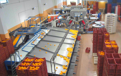 Altre tipologie di lavorazione in linea selezionano i frutti provenienti dalle uscite programmate attraverso la calibratrice. Quindi vengono convogliati alle pesatrici automatiche che sono poste a monte delle macchine confezionatrici. Il programma di produzione prevede la realizzazione di piccole confezioni a peso legalizzato o con un numero prestabilito di frutti già etichettati. A questo punto, i frutti vengono convogliati ai tavoli di accumulo, dove gli operatori addetti provvedono alla sistemazione manuale all’interno dell’imballo secondario. I singoli colli vengono palettizzati e stoccati nelle apposite aree destinate al prodotto finito.