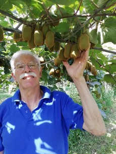 A sinistra: Claudio Tonini, proprietario dell’actinidieto; a destra: raccolto di kiwi Supplì