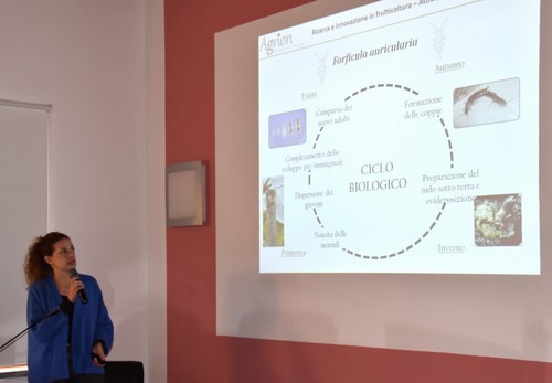 La ricercatrice Francesca Pettiti ha proseguito poi con un intervento sulla Forficula auricularia, ponendo l'attenzione su quelle che sono le principali misure preventive di contenimento attualmente disponibili. Per il primo anno, la forficula ha colpito anche il ciliegio, oltre che albicocco e pesco, a causa dell'anticipo del ciclo biologico dovuto alle alte temperature registrate già in primavera. Gli ultimi inverni più miti, inoltre, ne hanno favorito la sopravvivenza e, contemporaneamente, la revoca nel 2019 dell'unica esca registrata rende complicata la gestione dell'insetto.