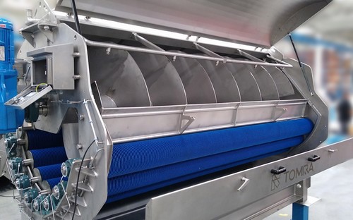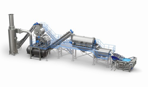 Questa attrezzatura post-peeling migliora anche la sostenibilità. Nel lavaggio, la filtrazione dell'acqua (con un filtro rotante riutilizzabile) riduce il consumo di acqua; con la separazione a secco, il consumo di acqua in questa fase del processo viene eliminato.