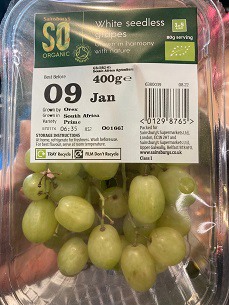A destra: uve da tavola Prime biologiche coltivate dalla Orex Export per la vendita al dettaglio nel Regno Unito