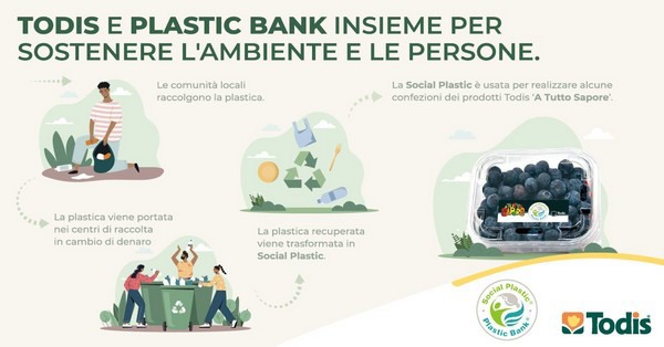 Nei punti vendita Todis è possibile trovare alcuni prodotti a marchio "A tutto Sapore" in confezioni Social Plastic®, recuperata dagli oceani, nel rispetto dell’etica della sostenibilità. L'iniziativa, sviluppata in collaborazione con l'azienda Carton Pack e il progetto Plastic Bank, ha inoltre lo scopo di migliorare le condizioni di vita delle persone che vivono nei Paesi in via di sviluppo, in cui il tasso di inquinamento è elevato.