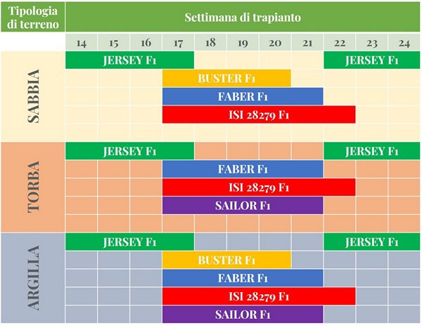 I suggerimenti di trapianto in base alle tipologie di terreno di coltivazione sono i seguenti:
