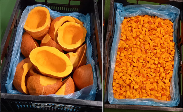 Dall'inizio di ottobre, le aziende inizieranno a fornire una nuova zucca Hokkaido rossa semilavorata: mezze zucche e cubetti, tagliati a 10 o 20 mm. "Negli ultimi anni, le zucche hanno guadagnato terreno in Europa ed è un ingrediente di molte ricette. Se dici zucca nei Paesi Bassi, tutti pensano alla zucca standard, ma abbiamo deliberatamente scelto la zucca Hokkaido rossa, che è una completamente diversa nel sapore e nell'esperienza gustativa".