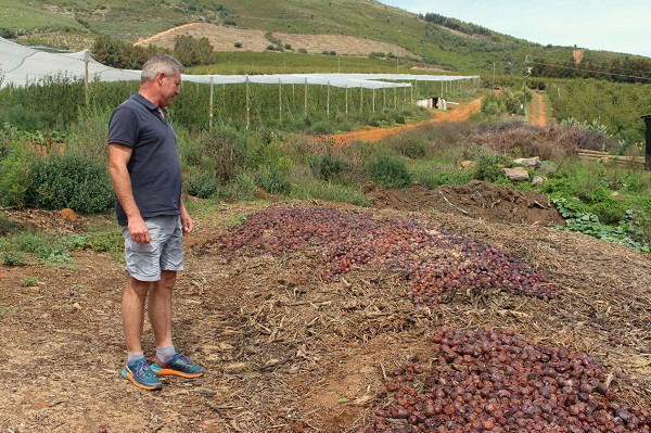 André le Grange con le susine da esportazione destinate al compostaggio (foto usata per gentile concessione di Hortgro)