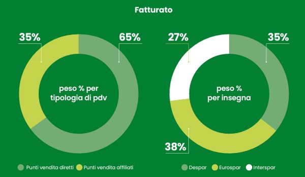 Nel dettaglio, il fatturato raggiunto nel 2022 è stato generato per il 65% dai punti vendita diretti e per il 35% dai negozi affiliati. Questi ultimi hanno registrato una crescita percentuale a doppia cifra (+10,5% vs 2021) confermando il ruolo strategico dell'affiliazione per Despar Italia.