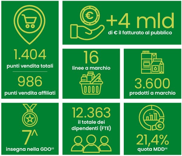 Le linee di prodotto che hanno registrato le migliori performance a livello di crescita di fatturato sono state Despar (+20,1%), Premium (+15,1%), Enjoy (+23,5%), Scelta Verde Eco,logico (+13,4%), Free From (+14,9%) e Veggie (+13,4%), percentuali di crescita significative per questi marchi trainate da un importante aumento dei volumi di vendita.