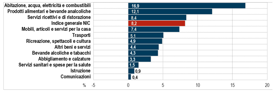 L'inflazione acquisita per il 2023 è pari a +5,3% per l’indice generale e a +4,5% per la componente di fondo.