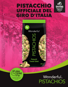Il "Pistacchio ufficiale del Giro d'Italia 2023" Wonderful è anche presente, sempre in questo periodo, sulle principali testate italiane (magazine del mondo Food, Sport, sugli house organ dei retailer e sui quotidiani) con una campagna pubblicitaria dedicata alla sponsorizzazione.