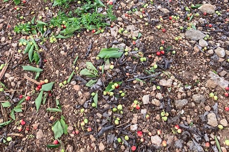 Ciliegie a terra, strappate dal vento