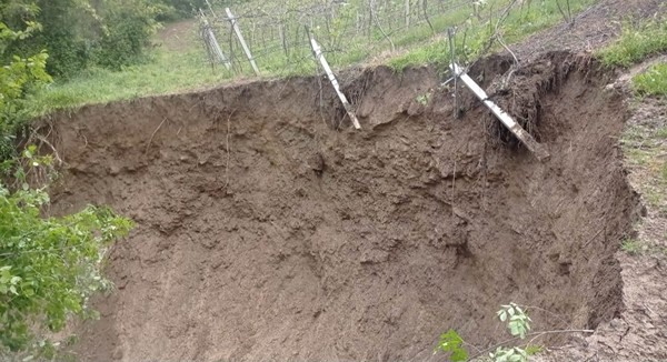 Impianto di kiwi eroso dal fiume