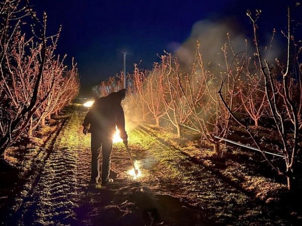 Per cercare di mitigare i danni causati dal gelo, i produttori accendono fuochi per aumentare la temperatura nei frutteti ungheresi di albicocche.