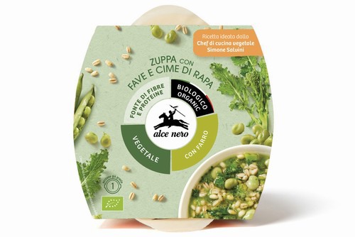 La gamma di zuppe fresche Alce Nero accoglie una nuova referenza con l'arrivo dell'estate. Frutto della collaborazione con lo chef Simone Salvini, grande maestro e interprete della cucina vegetale, vegana e ayurvedica. Nasce così la nuova Zuppa con Fave e Cime di Rapa, biologica e preparata con ingredienti vegetali, scelti e bilanciati per offrire un piatto gustoso e completo.