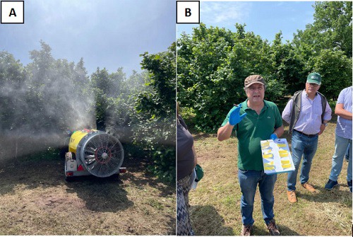 Nel corso della giornata dedicata al progetto coordinato da Italia Ortofrutta – Unione Nazionale con la finalità di trasferire le innovazioni dal mondo della ricerca a quello produttivo, l'Università degli Studi della Tuscia ed il CREA-IT, con la disponibilità dell'azienda agricola Capati di Civita Castellana, hanno mostrato in campo come l'utilizzo degli ugelli antideriva, unitamente ad una corretta taratura delle botti, possano consentire una forte riduzione dell'impatto dei trattamenti fitosanitari nei confronti dell'ambiente pur mantenendo la medesima efficacia dei trattamenti contro le fitopatie.