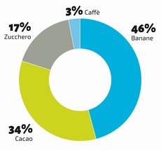 Banane: il prodotto più venduto. Si confermano la categoria merceologica più rilevante tra i prodotti a marchio Fairtrade, con 13 milioni di chilogrammi venduti, anche se in leggera flessione rispetto all'anno precedente (-3%) dovuta alla generalizzata contrazione dei volumi del biologico.