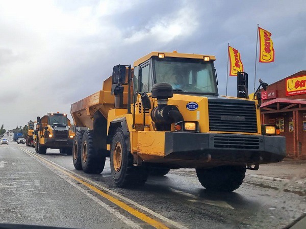 Sono in corso le riparazioni al ponte cittadino sul fiume Olifants, spazzato via dall’alluvione, inclusa la deviazione del corso del fiume in piena.