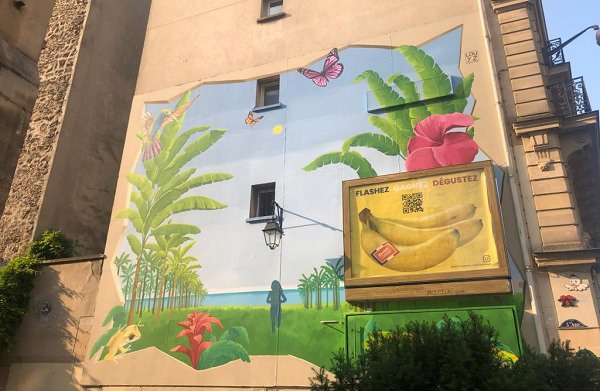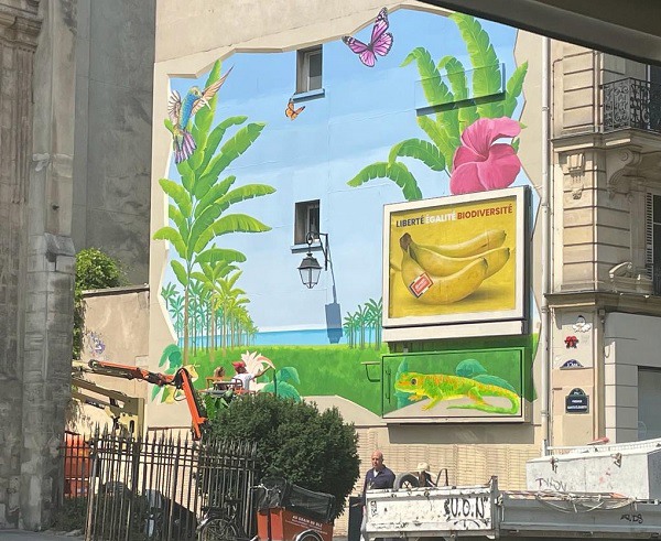 L'Unione dei produttori di banane della Guadalupa e della Martinica (UGPBAN) ha chiesto all'artista francese LOUYZ di promuovere al grande pubblico la ricca biodiversità delle piantagioni attraverso un murale nel cuore di Parigi. Di oltre 100 metri quadrati, il murale è stato realizzato dal 12 al 16 giugno al 197 di rue du Temple, nel 3° distretto di Parigi, e sarà visibile fino al 28 giugno.