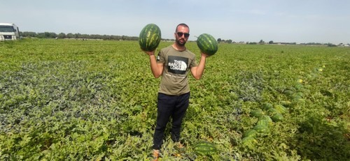 Luigi De Giorgio, titolare dell'Agricola Octavius di Nardò, con due angurie della varietà UG 1940