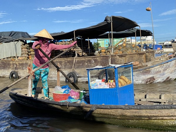 Il delta del Mekong è percorso da numerosi fiumi e canali navigabili che, prima della costruzione di strade e ponti, erano le uniche vie di comunicazione. Il commercio dei prodotti agricoli avveniva principalmente lungo le vie fluviali con barche e i mercati galleggianti erano il luogo deputato alla commercializzazione dei prodotti ortofrutticoli.