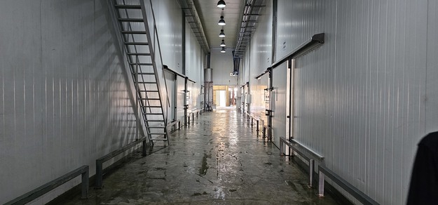 È in costruzione una nuova grande cella refrigerata. Ci sono anche pannelli solari ovunque