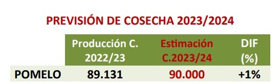 Per quanto riguarda i pompelmi, le stime di produzione di AILIMPO per la stagione 2023/24 indicano un volume di 90.000 tonnellate, praticamente lo stesso della stagione precedente.