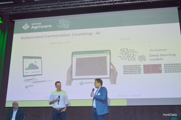 Pim van Geest della AgriData Innovations ha parlato del suo GA-Box. Si tratta di un sistema statico di raccolta dati a cui il coltivatore invia i raccolti per l'analisi. Accedendo alla WebApp ADI, i coltivatori possono avere un quadro di pianificazione delle loro colture. Questi dati vengono poi collegati al sistema ERP del coltivatore, consentendo una gestione della coltivazione basata sui dati.