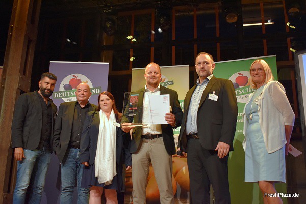Vedat Samal, Werner Schug, Sarah Grün, Matthias Immesberger e Thomas Helmes hanno ritirato il Retail Award, nella categoria Ipermercati, per Globus Markthallen St. Wendel GmbH & Co. KG, alla presenza di Kerstin Sobottka della Rijk Zwaan.