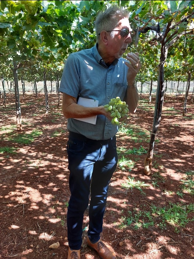 In foto a lato: Piet assaggia l'uva da tavola quasi matura