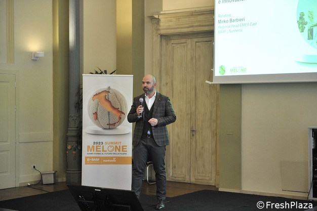 Dopo il benvenuto di Claudia Iannarella (Consumer and Customer Manager Italy), è intervenuto Mirko Barbieri (Regional Head EMEA East BASF-Nunhems) il quale ha illustrato gli ultimi decenni di innovazione sul melone, con passi avanti notevoli sul fronte della genetica e quindi dell'aspetto, del gusto e della conservabilità del melone, nonché un sempre maggiore affiancamento del liscio al tradizionale retato.