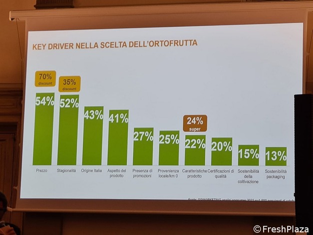 Ha sottolineato Garipoli: "Prezzo, stagionalità e origine sono i primi 3 driver. Poi si hanno caratteri legati alla sfera organolettica. I competitor dell'ortofrutta non sono fra noi, ma sono le industrie alimentari che propongono alimenti elaborati, slegati da stagionalità e territorio, ma che magari cercano di appropriarsene".