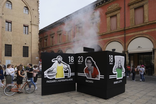 Ma le sorprese non sono finite qui. Nel fine settimana del 14 e 15 ottobre, un gigantesco cubo nero è comparso in piazza Galvani, nel centro di Bologna.